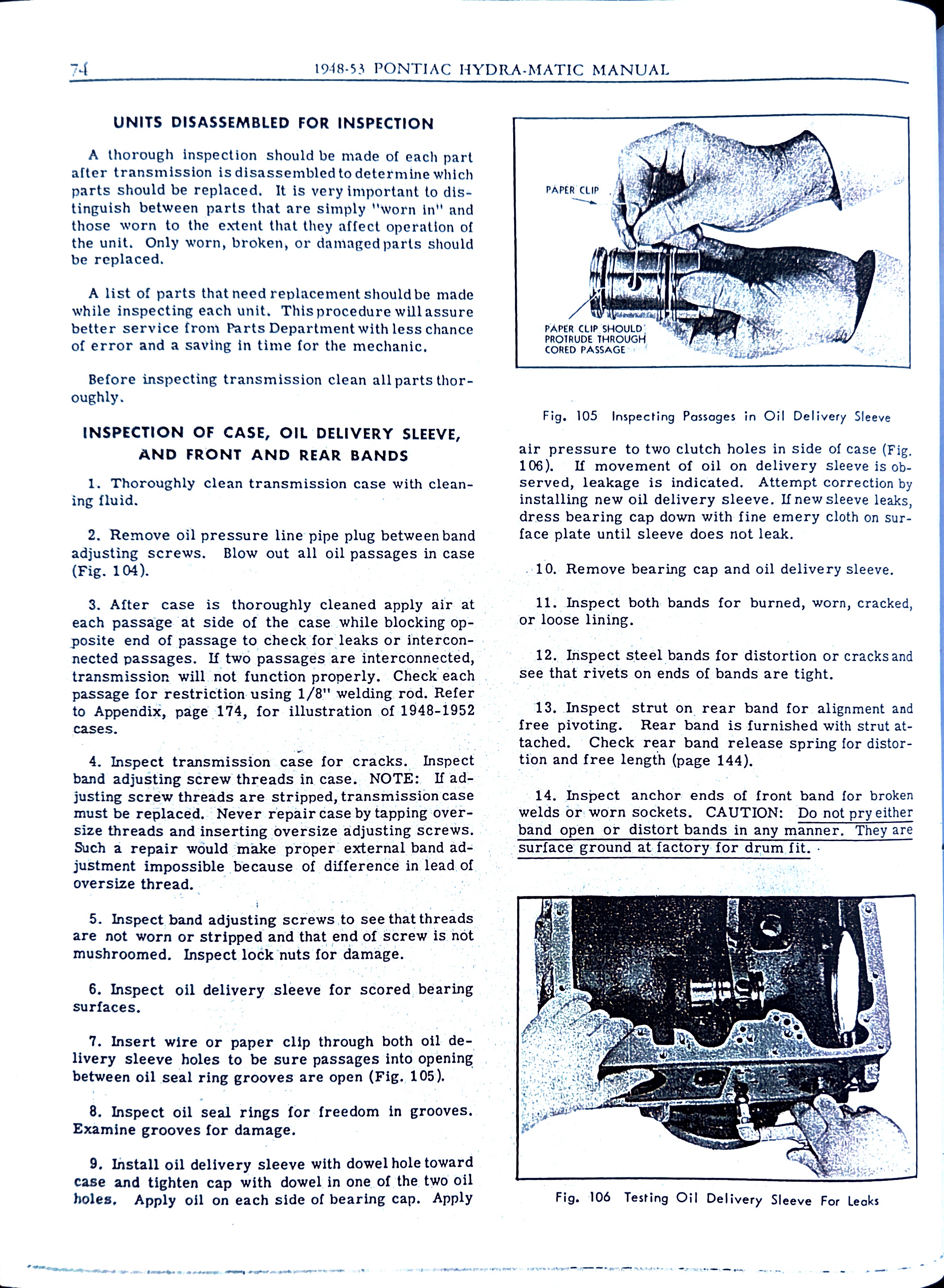 Note: This gallery displays all pages from the 1948-1953 Pontiac Hydra-Matic Transmission Shop Manual (This manual predates the 1954 Model, but the information will carry over).