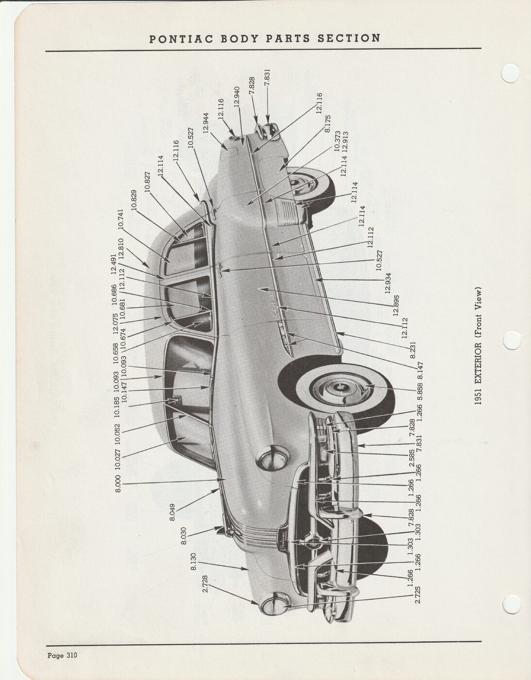 1951 Pontiac Exterior View showing group numbers for parts.