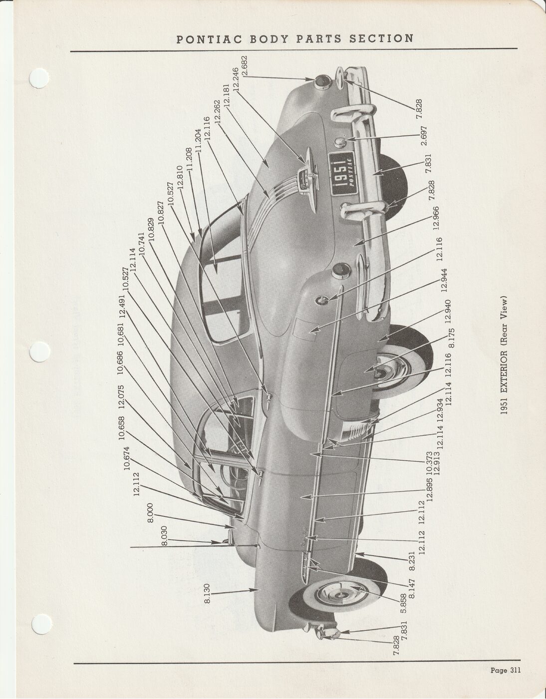 1951 Pontiac Exterior View showing group numbers for parts.