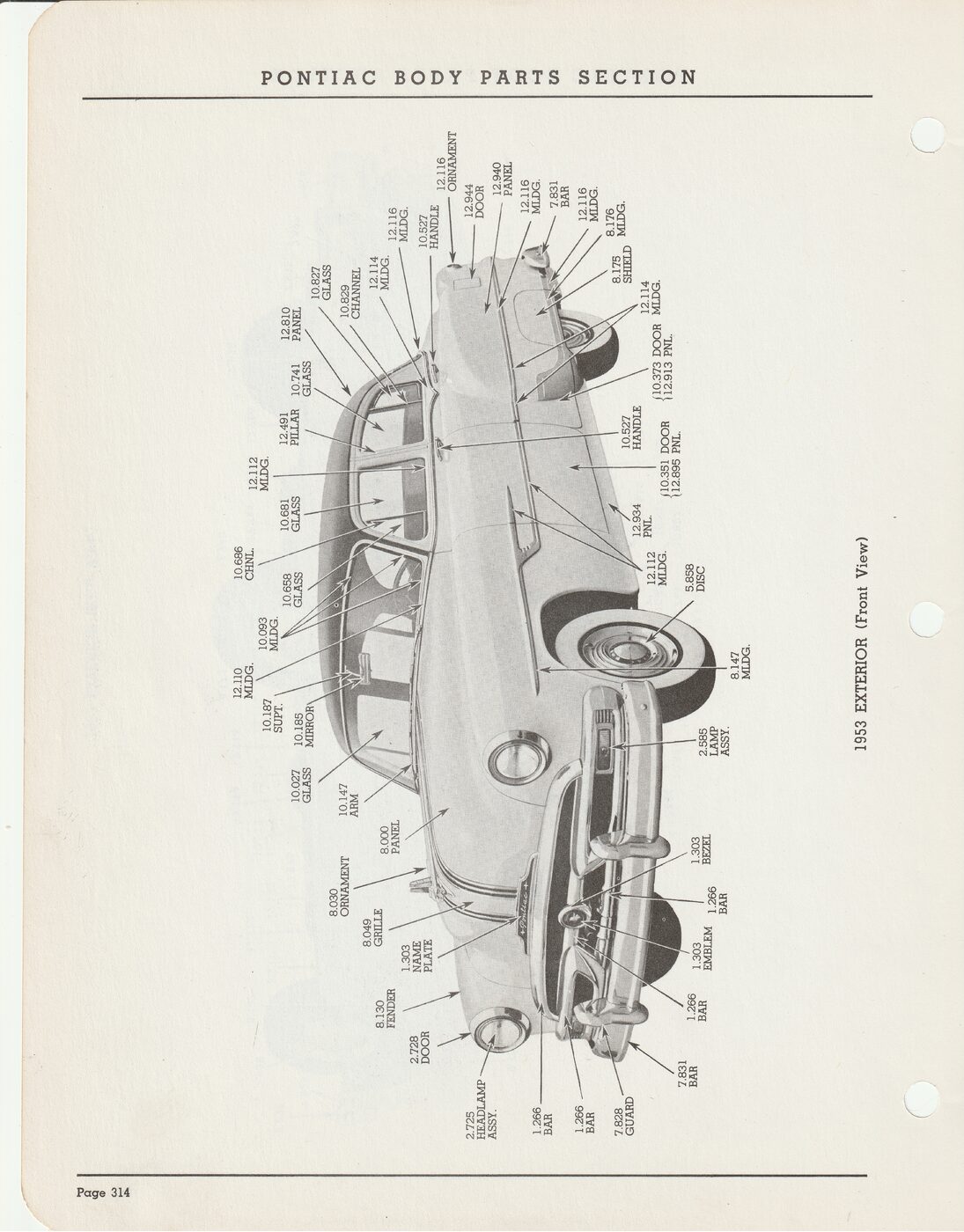 1953 Pontiac Exterior View showing group numbers for parts.