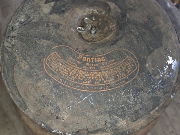 Heavy duty oil bath air cleaner off a 1951 Pontiac straight eight. Good solid air cleaner for restoration. Off a Nebraska car that has sat since the 1960s. This is correct for 1951-54. $50 plus shipping.