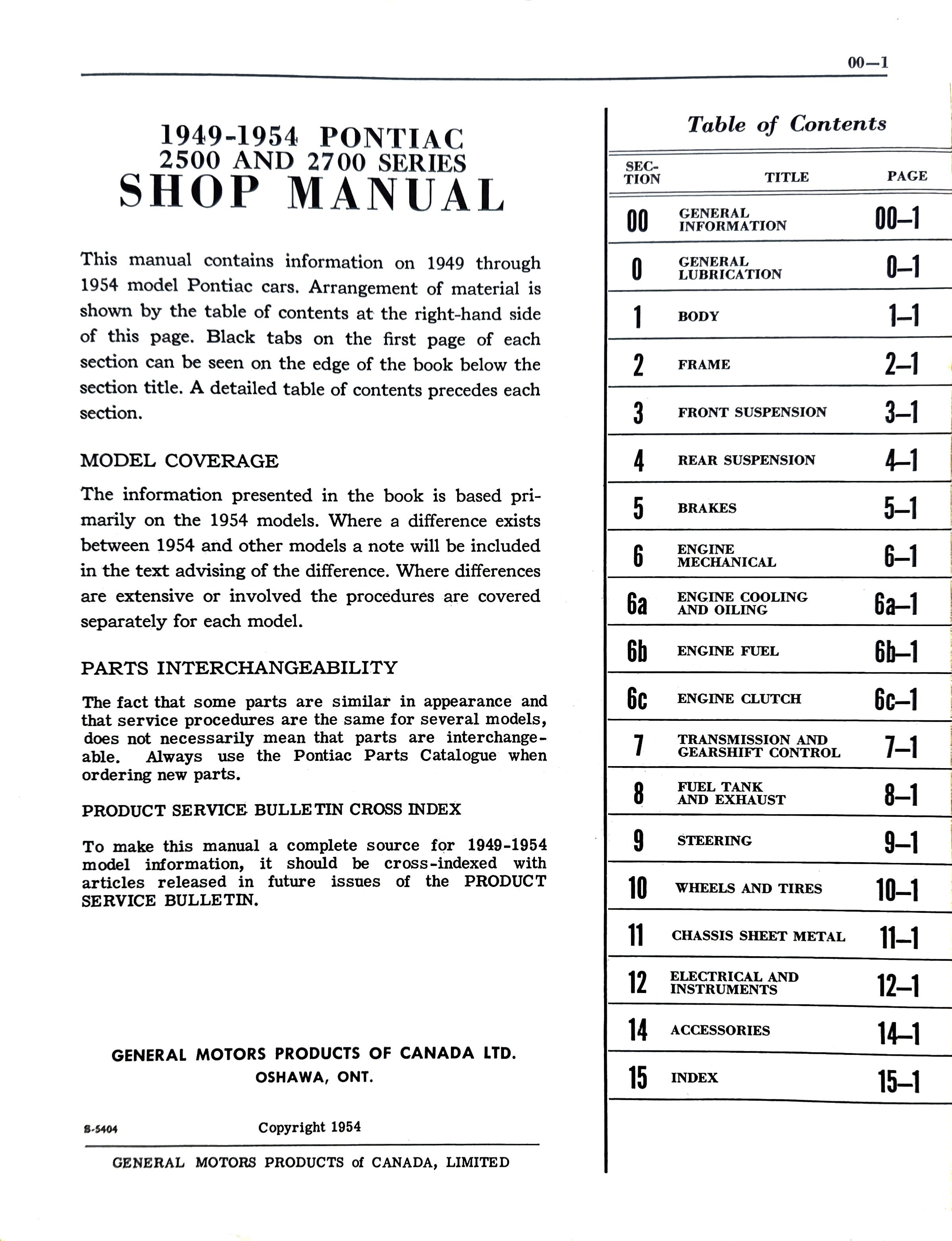 Note: This image gallery displays pages from the original CANADIAN 1949-1954 Pontiac Maintenance Manual series 2500-2700 by section.
