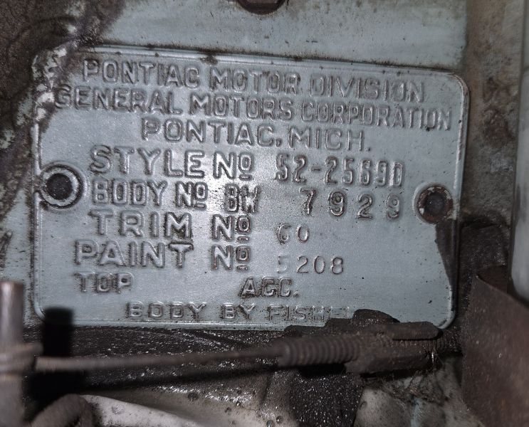 1949–1952 Pontiacs, the body tag is located on the passenger-side front of the firewall.