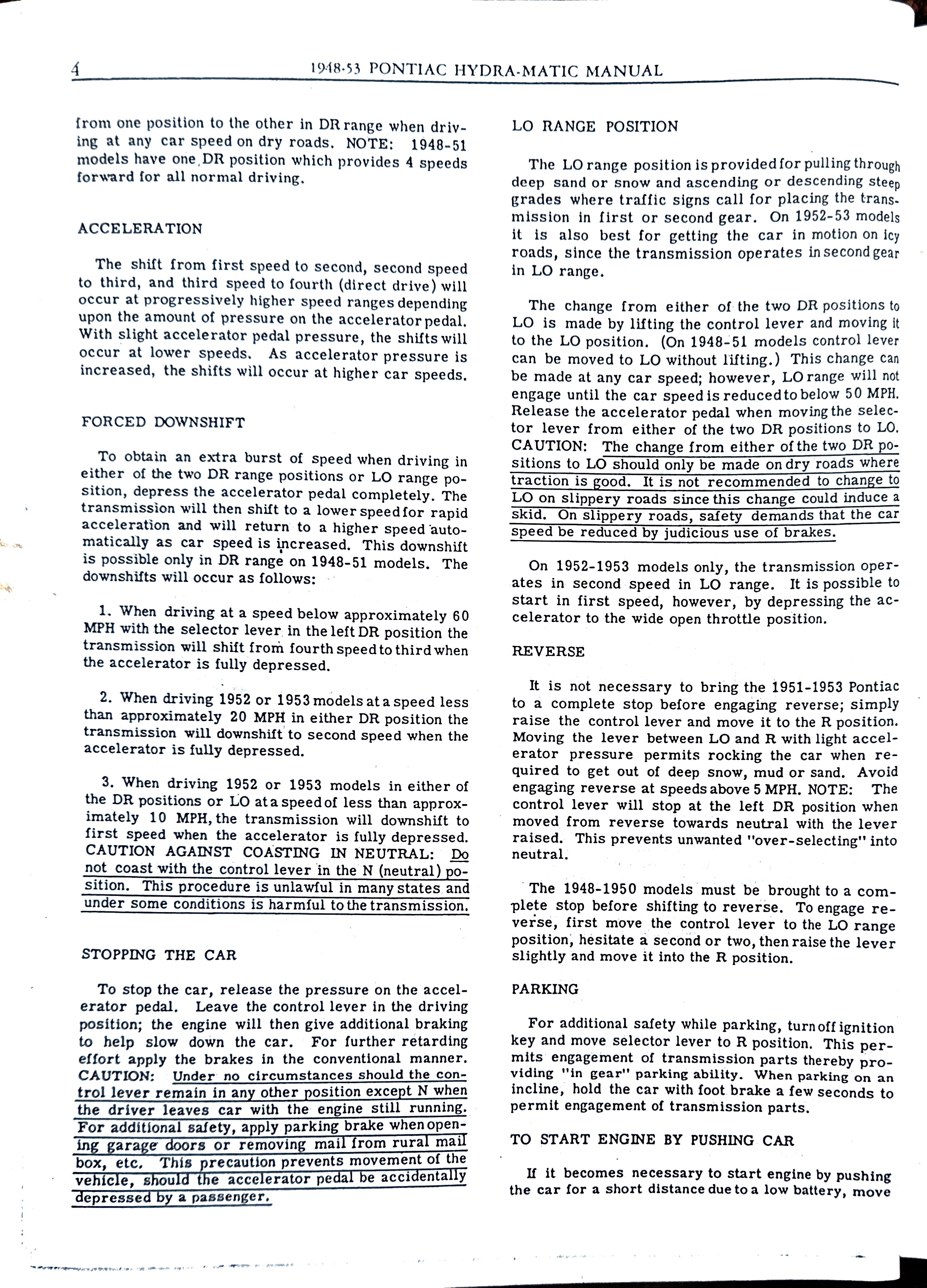 Note: This gallery displays all pages from the 1948-1953 Pontiac Hydra-Matic Transmission Shop Manual (This manual predates the 1954 Model, but the information will carry over).
