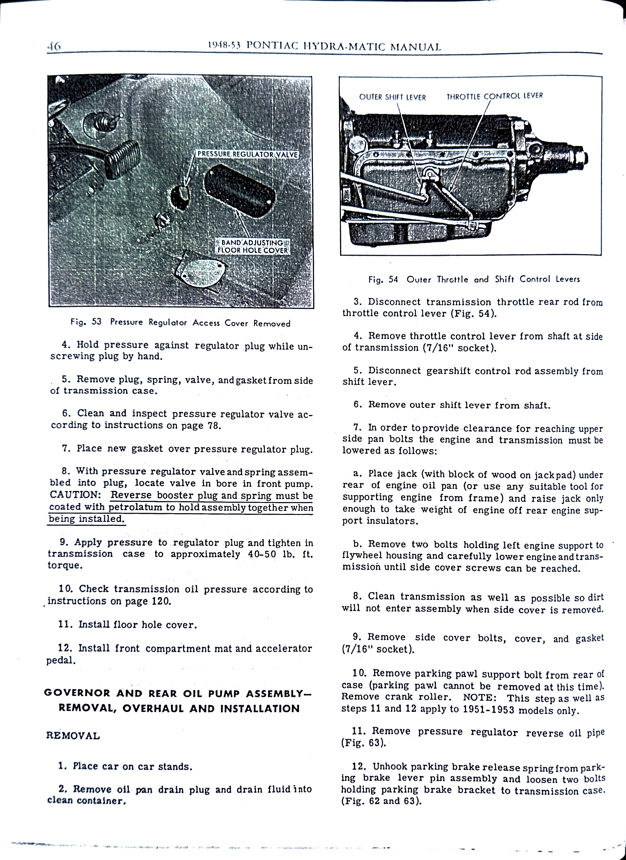 Note: This gallery displays all pages from the 1948-1953 Pontiac Hydra-Matic Transmission Shop Manual (This manual predates the 1954 Model, but the information will carry over).