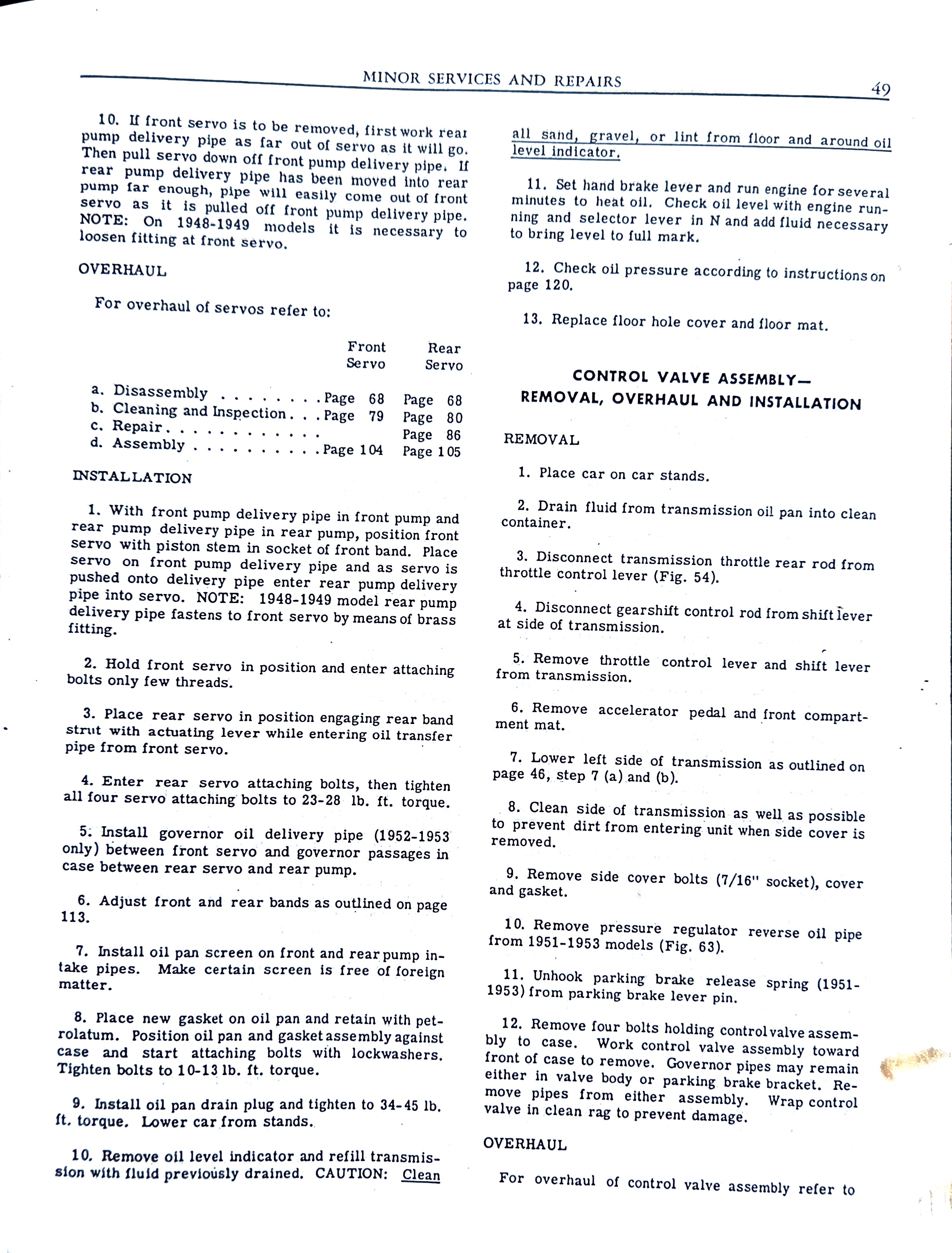 Note: This gallery displays all pages from the 1948-1953 Pontiac Hydra-Matic Transmission Shop Manual (This manual predates the 1954 Model, but the information will carry over).