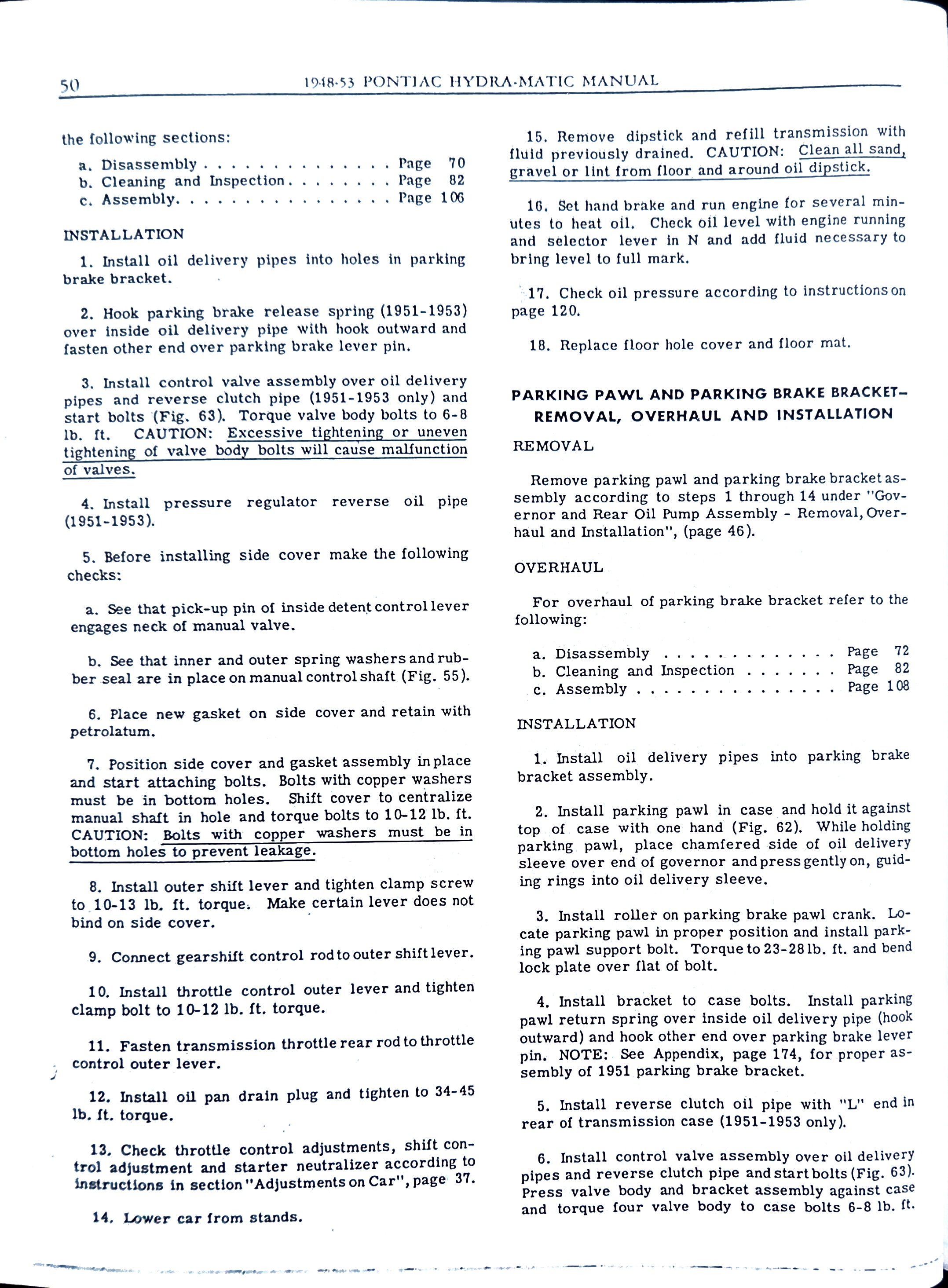 Note: This gallery displays all pages from the 1948-1953 Pontiac Hydra-Matic Transmission Shop Manual (This manual predates the 1954 Model, but the information will carry over).