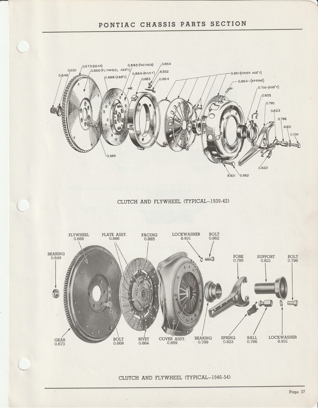 Clutch and flywheel parts with group numbers.