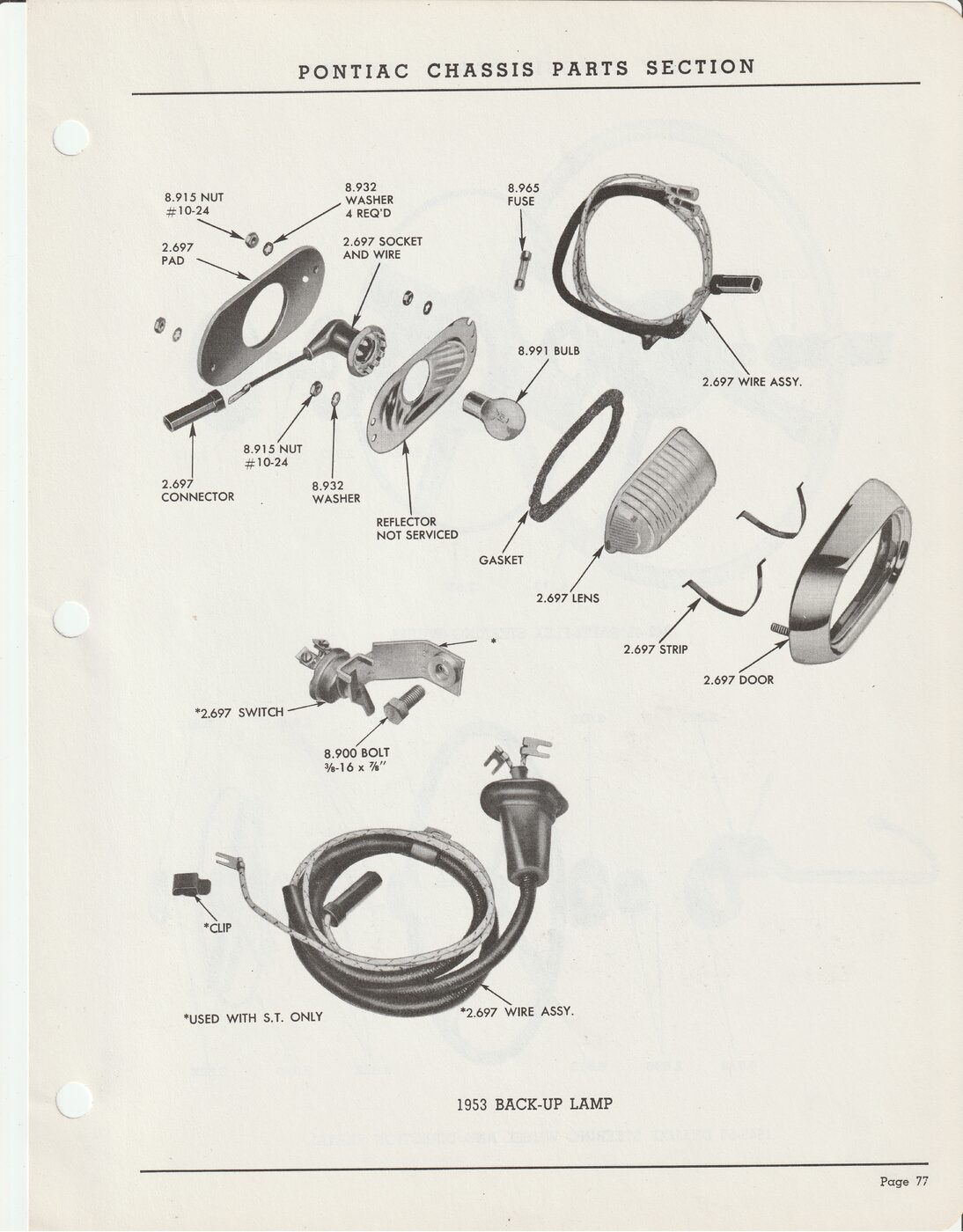 1953 Back up lamp assembly with group numbers