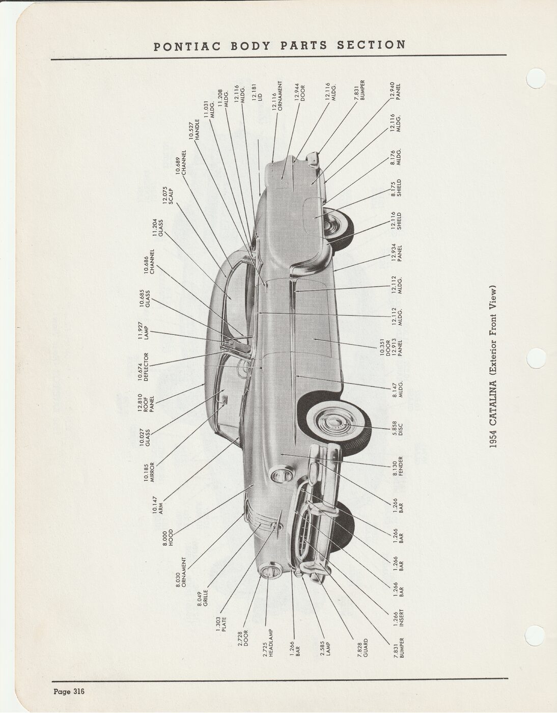 1954 Pontiac Catalina Exterior View showing group numbers for parts.