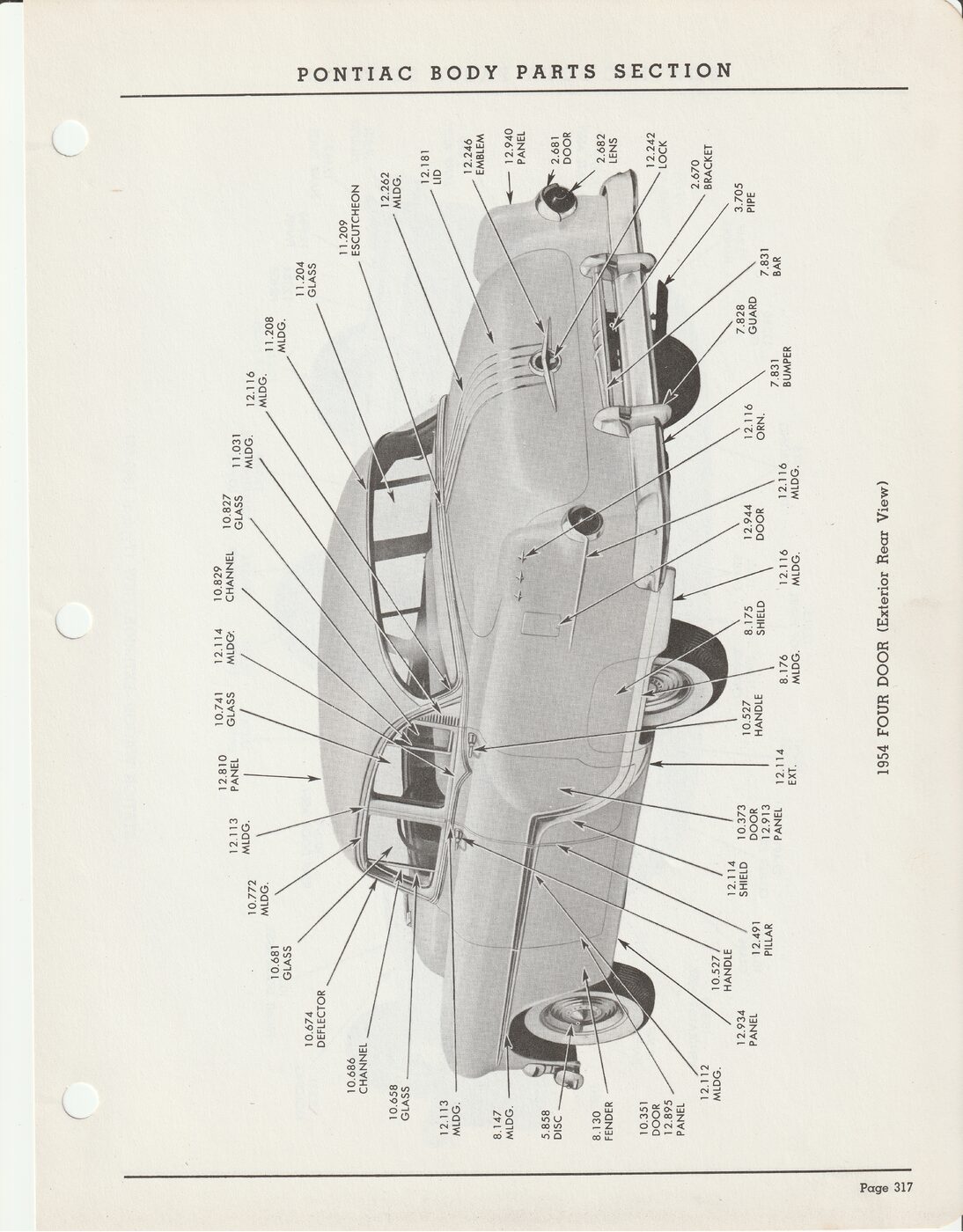 1954 Pontiac Exterior View showing group numbers for parts.