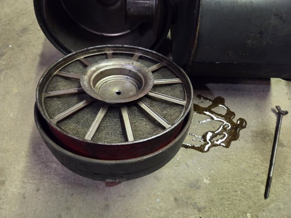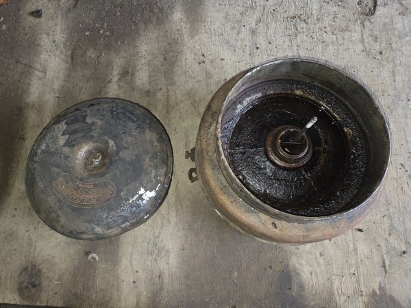 Heavy duty/oil bath air cleaner. Good condition, has some dings. Will fit other years also, but is correct for 1949-50.